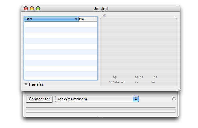 - Start Hac4OSX. If no data is present, the connect drawer will already be open. If it's not, then just click on the small triangle next to 'Transfer'.